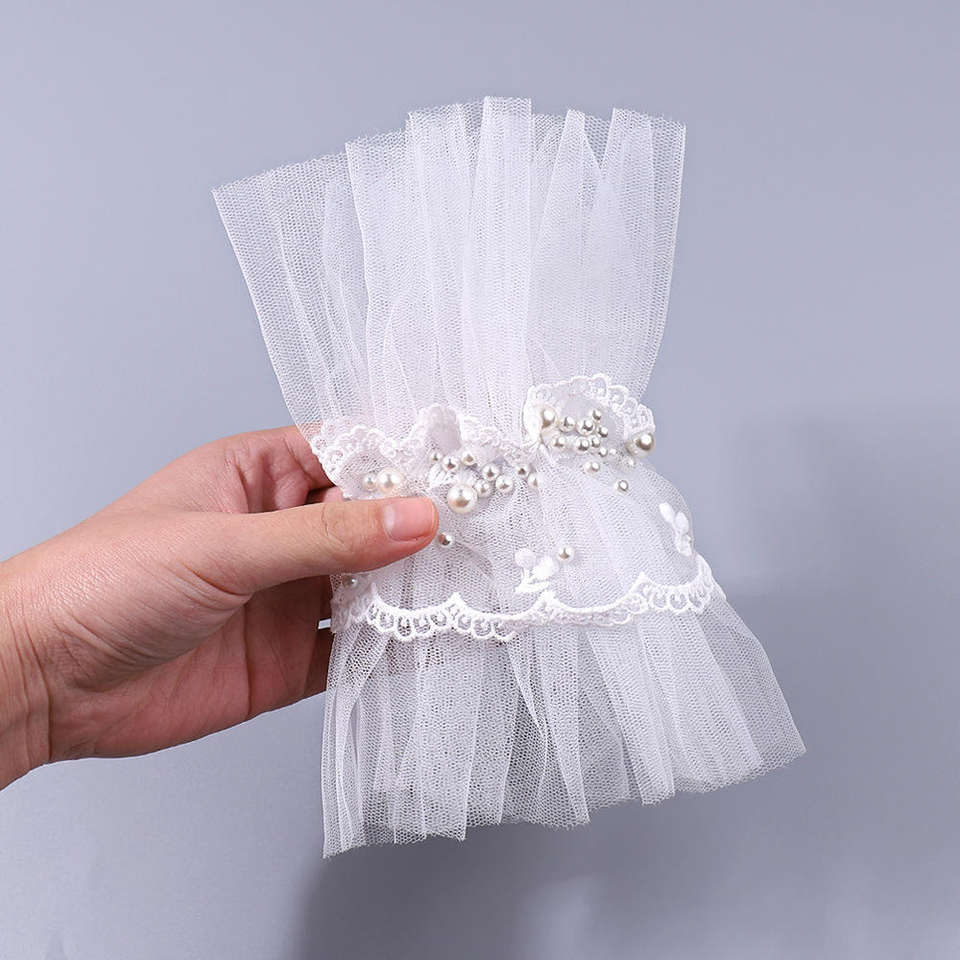 Cute Women Horn Fairy White Nails with Decorations Nail Art Shooting Props Cotton Nylon Lace Trim Fabric Ribbon Nail Decoration