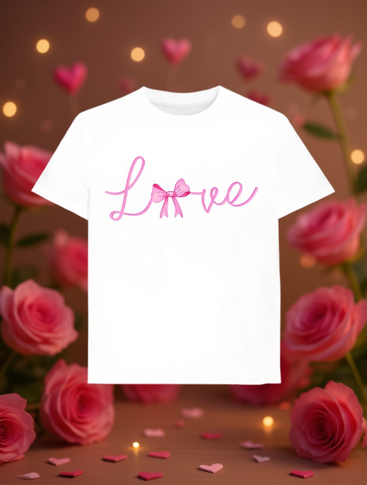 Cute Women's Valentine's Day T-Shirt Love Print Crew Neck Short Sleeve 100% Cotton Jersey Regular Fit Spring Summer