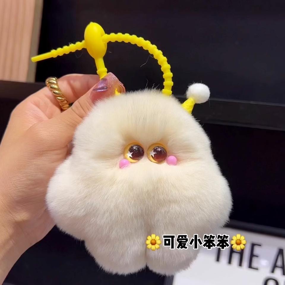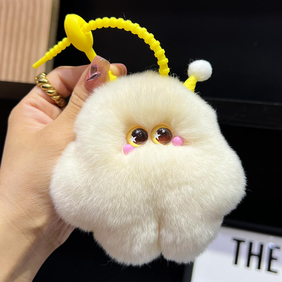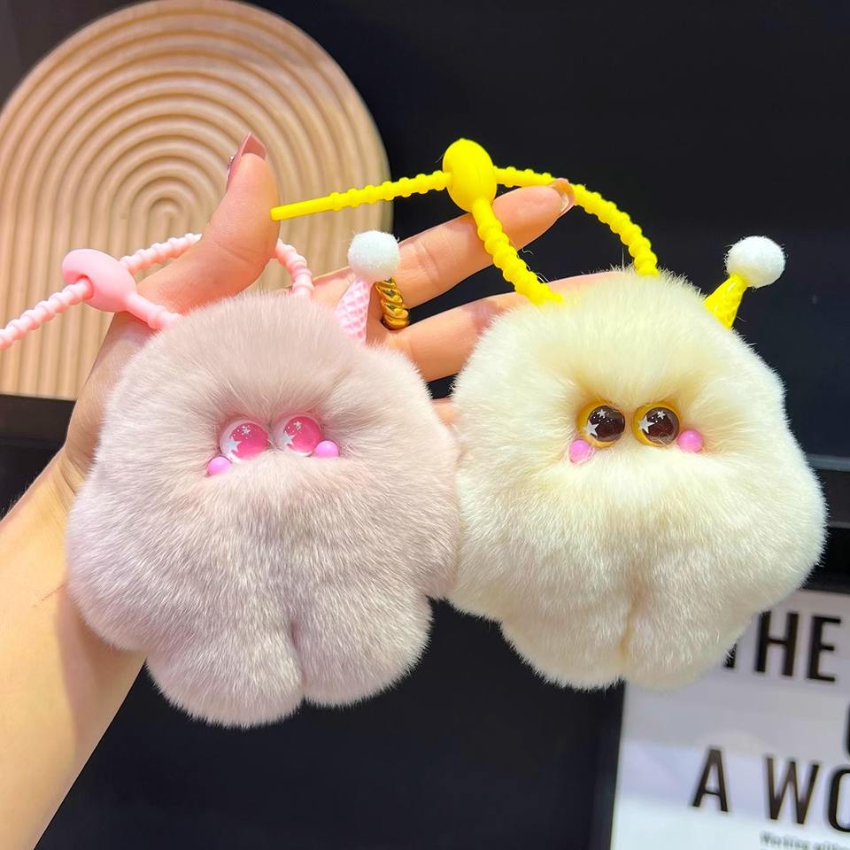 Ciondolo per Borsa a Forma di Gelato in Pelliccia di Coniglio Rex, Portachiavi, Ornamento Morbido e Divertente