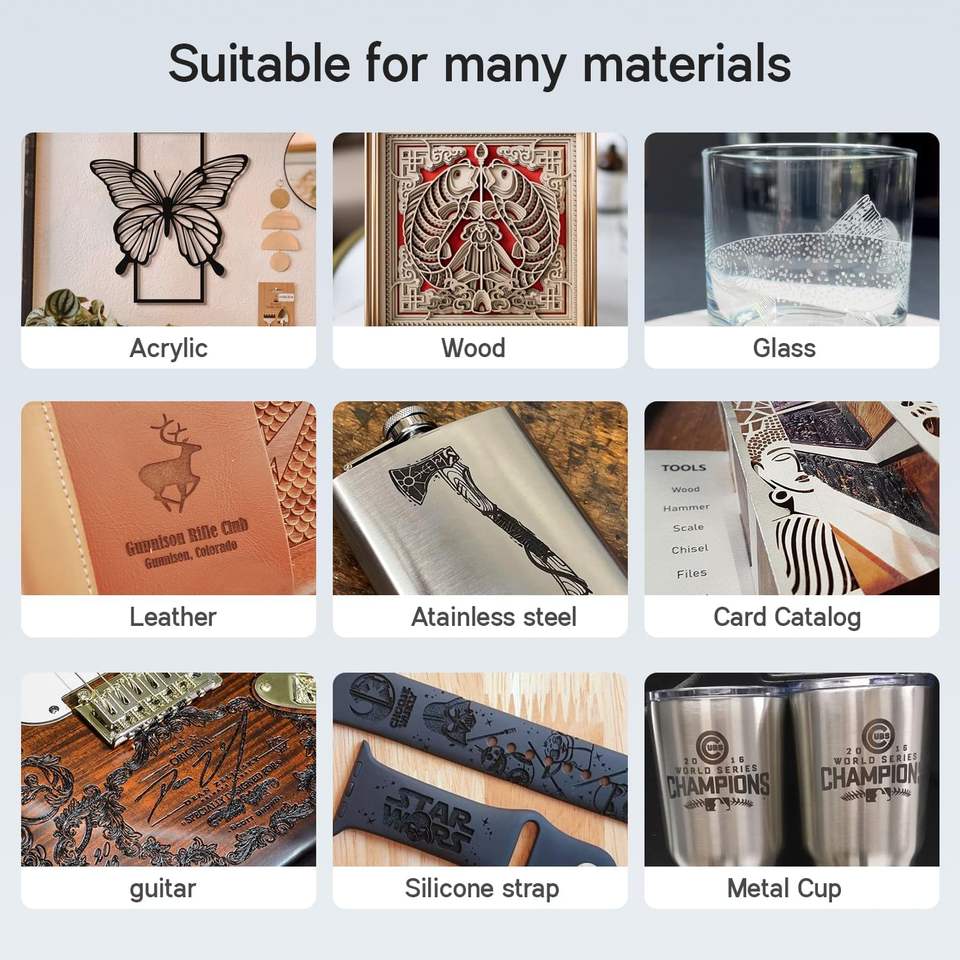 Acrilico, Crytal, Vetro, In pelle, MDF, Metallo, Carta, Plastica, Plexiglax, Compensato, Gomma, Pietra, LegnoMateriale applicabile