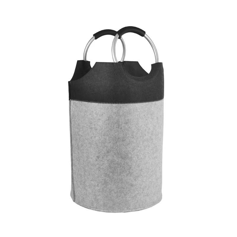 Cylinder Felt Cloth Folding Dirty Clothes Laundry Basket Storage for Bedroom Bathroom Portable Handbag Design Garbage Storage