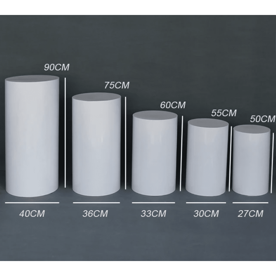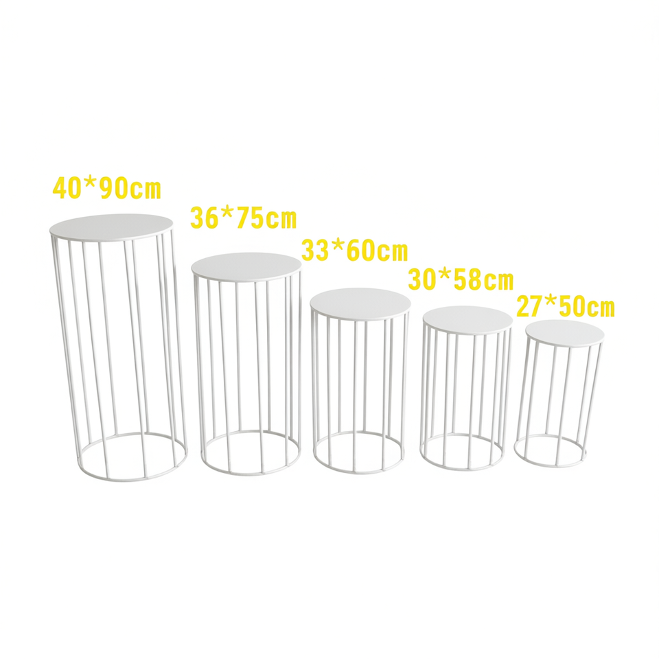 Set di Supporti Cilindrici 5 Pezzi 40x90cm 36x75cm 33x60cm 30x58cm 27x50cm, Decorazioni Riutilizzabili in Metallo per Matrimoni e Feste, Uso Interno