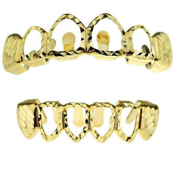D-Cut Open Gold-Plated Grillz Top and Bottom Teeth Fine Dental Jewelry