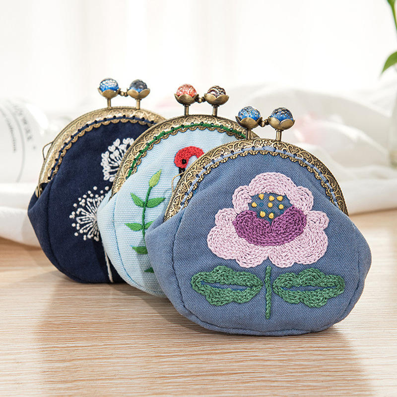 Kit Fai-da-Te per Ricamo a Punto Croce D&D, Set per Creare Portamonete, Kit Artigianale per Lavori a Maglia e Uncinetto, Motivo Floreale, Ricamo Compatto Fatto a Mano