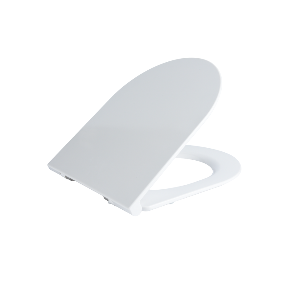 D-Shaped Glossy White Duroplast Toilet Seat Compatible with Various Toilets