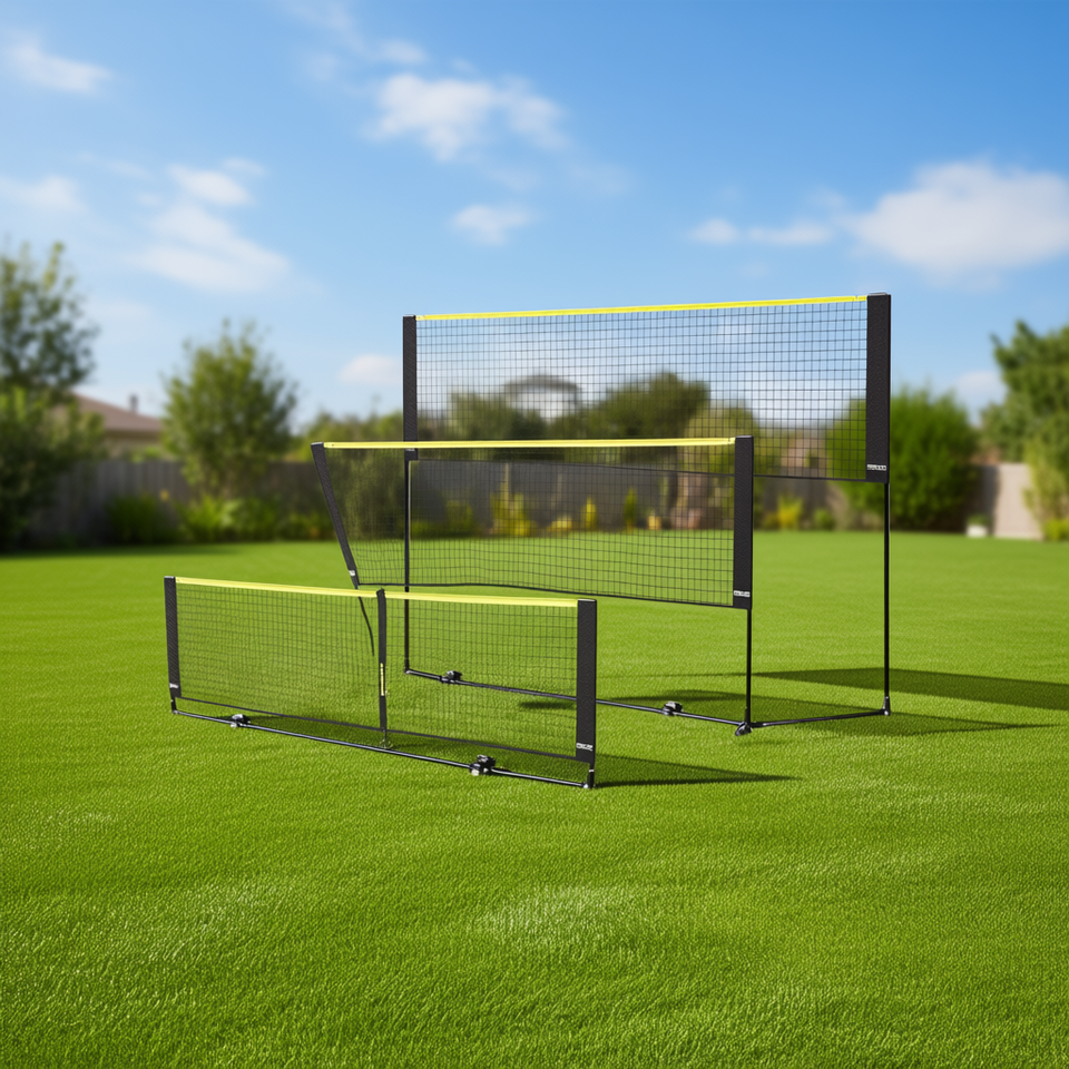 D0100HAMI2Y Set Rete da Badminton 3m di Larghezza con Pali Regolabili per Bambini, Gioco Indoor e Outdoor