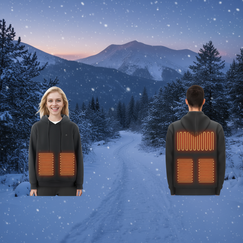 D0100HRI08P Unisex Heated Hoodie XXL Battery Operated Warm Sweatshirt For Outdoor Use