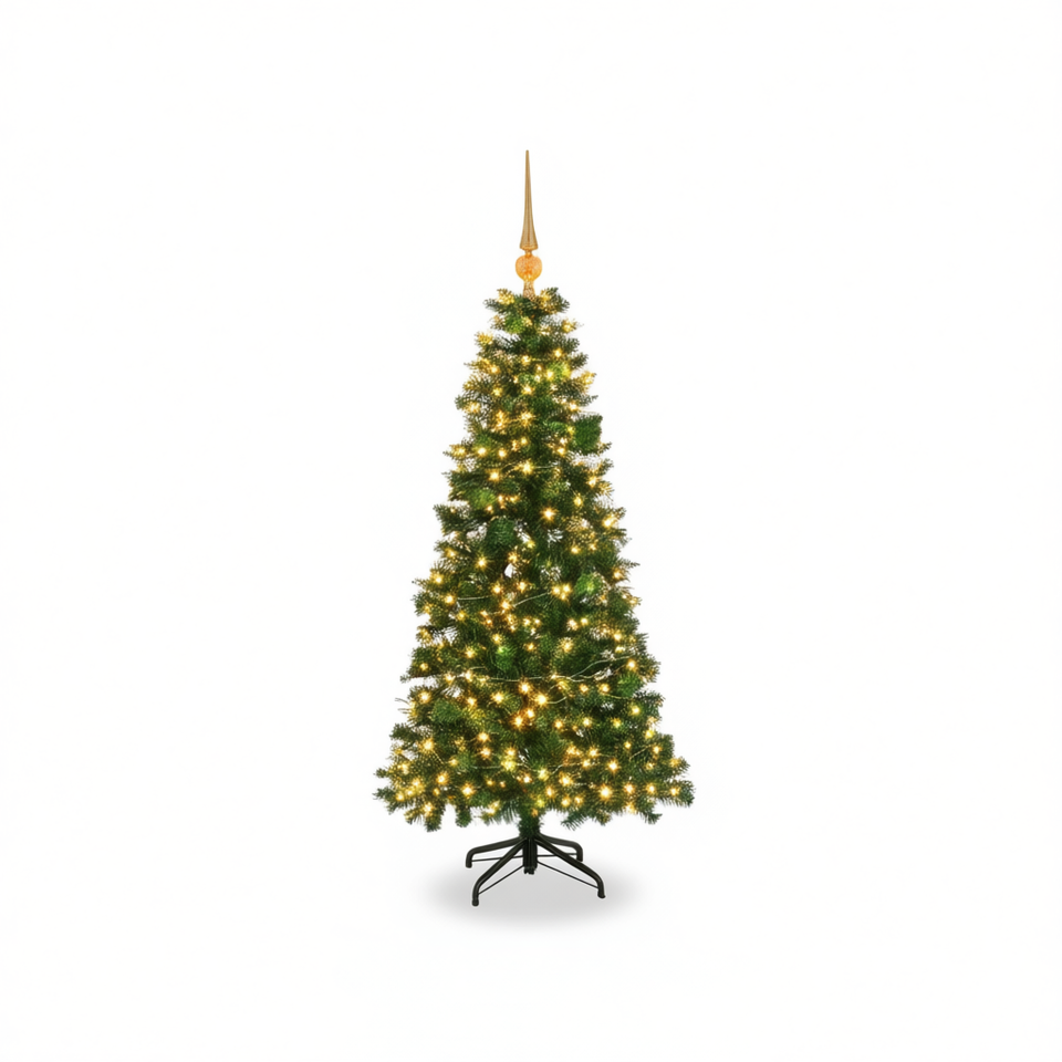 Albero di Natale Artificiale D0100X3WR36 Verde 120 cm con 150 LED Bianchi Caldi, Illuminazione a Forma Triangolare in Plastica, Controllo Manuale