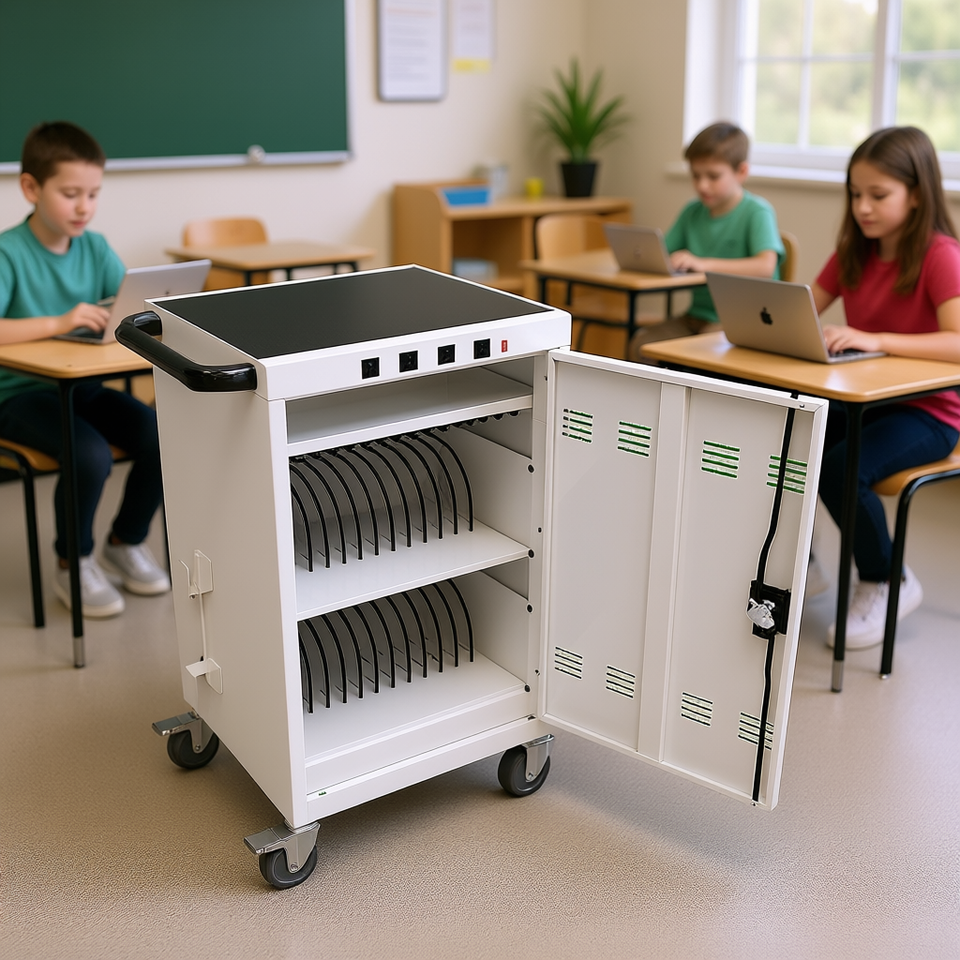 D0100XFZQGX Mobile Charging Cart 31+4 Device Metal Cabinet For Tablets Laptops Educational Use