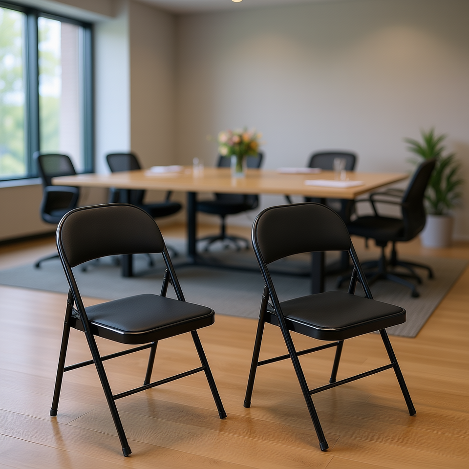 D0100XU4TKU Folding Chair Steel Frame Black PVC Cushion Home Office Commercial Use