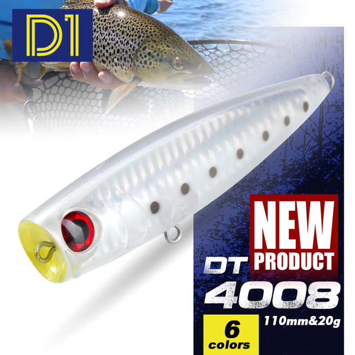 Esca Artificiale D1 110mm 20g Galleggiante per Acque Salate e Dolci, Popper per Pesca