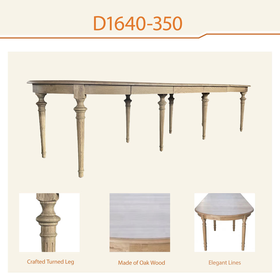 D1646-350 Hoolnn Tavolo da Pranzo Allungabile in Rovere Massiccio Stile Francese Vintage Classico con Prolunghe, Arredamento per Sala da Pranzo