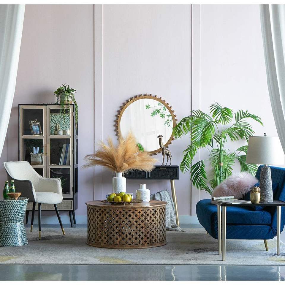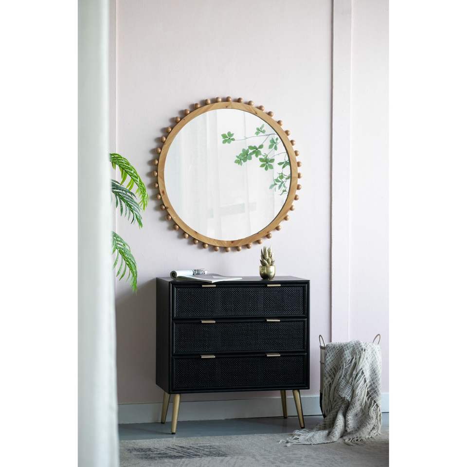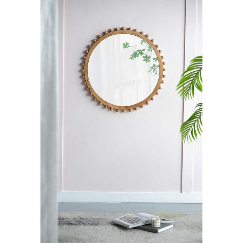 D34 Wood Round Wall Mirror with Beaded Frame for Living Room Bedroom or Entryway