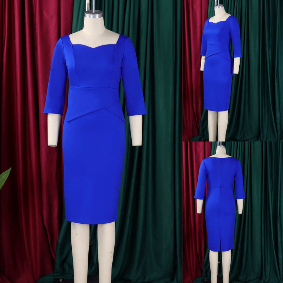 D591 High Quality Ladies Office Dresses Women Casual Elegant square Collar Half Sleeve Slit Slim African Dresses for Women