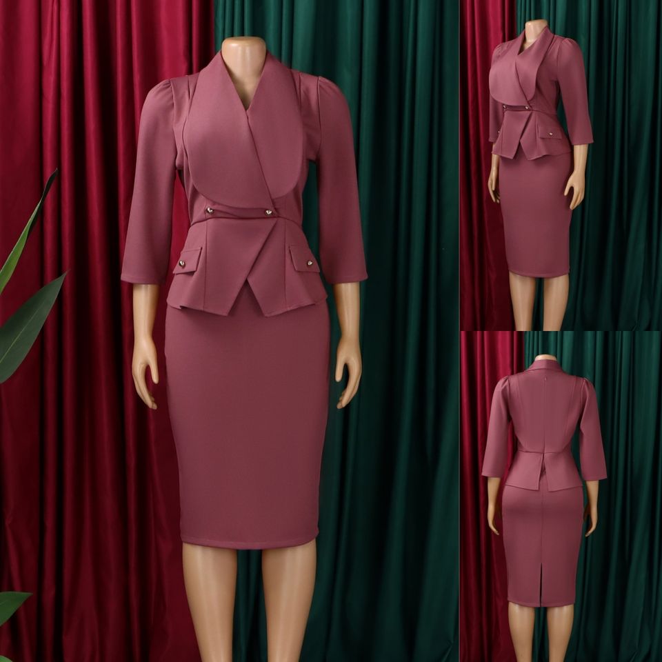 D604 Manufacturers Career Dresses Big Collar 3/4 Sleeve Slim Waist Office Lady Dress Elegant African Dresses for Women Clothing