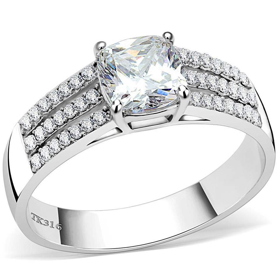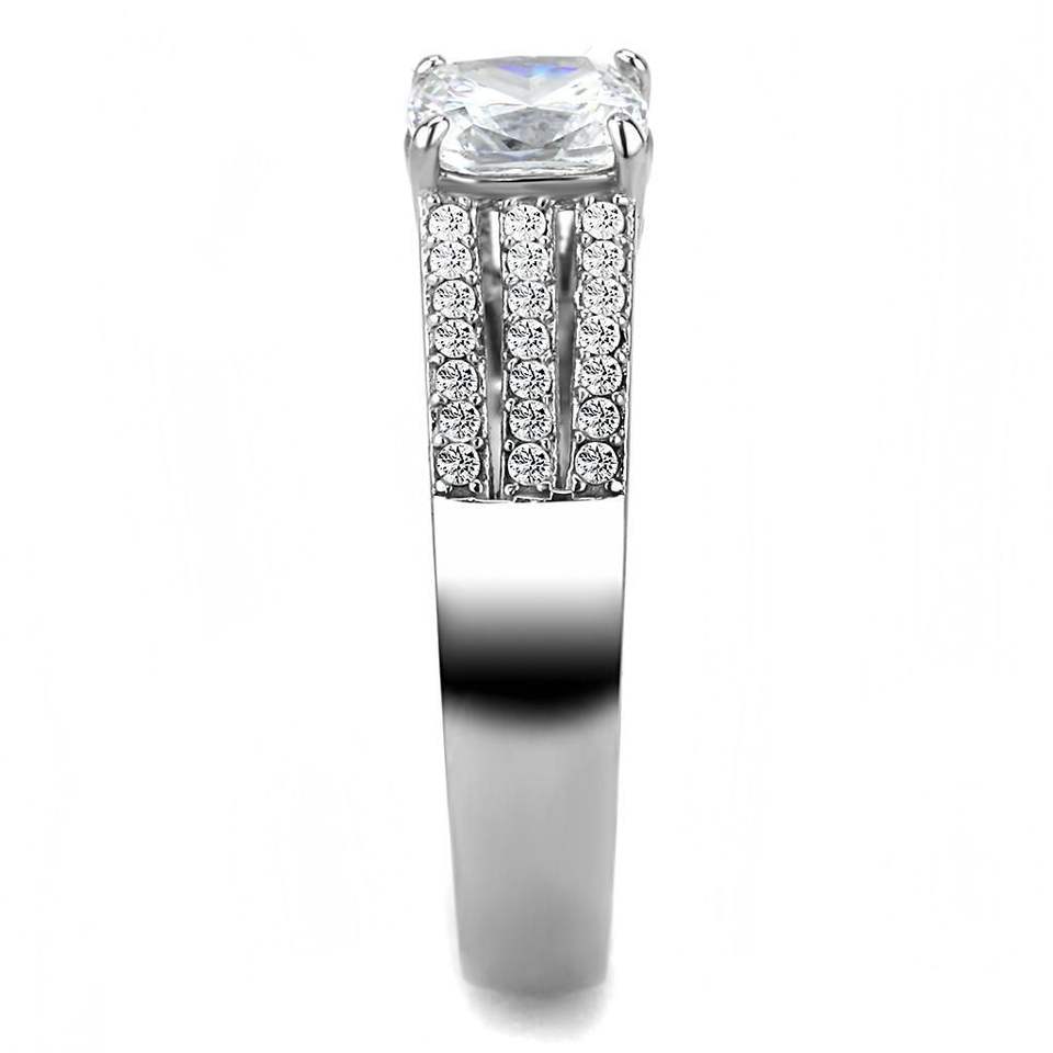 Anello in Acciaio Inossidabile Lucidato DA020 con Accessorio per Piatti e Vassoi in Cristallo Cubico Trasparente