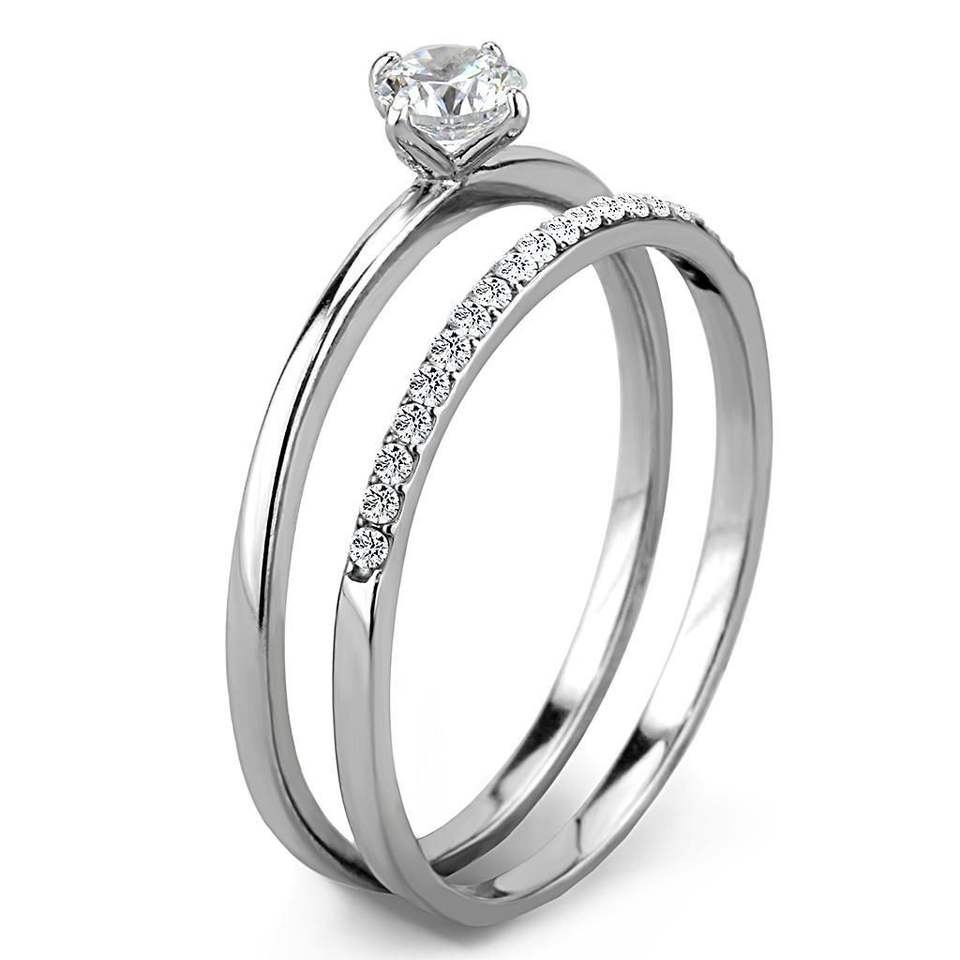 DA026 Anello in Acciaio Inossidabile Lucidato a Specchio con Zirconi Cubici di Grado AAA