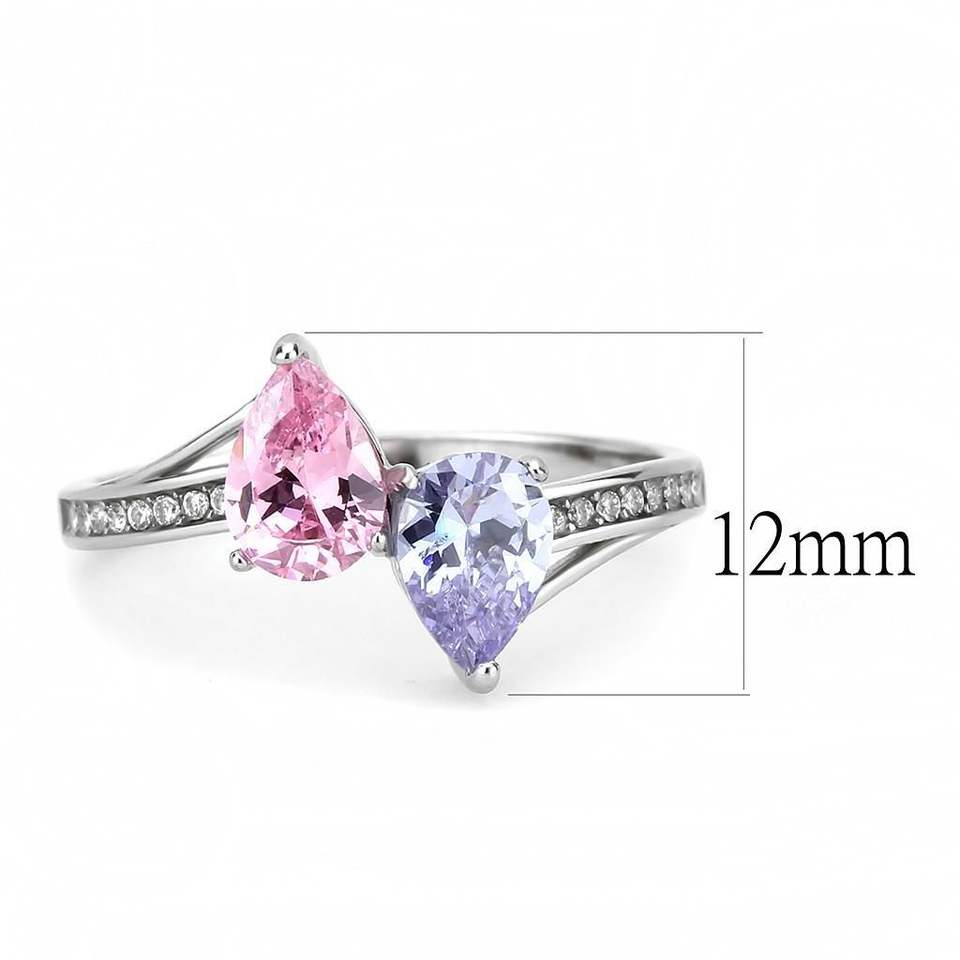 Anello in Acciaio Inossidabile Lucidato DA270 con Zirconi Cubici di Grado AAA Multicolore