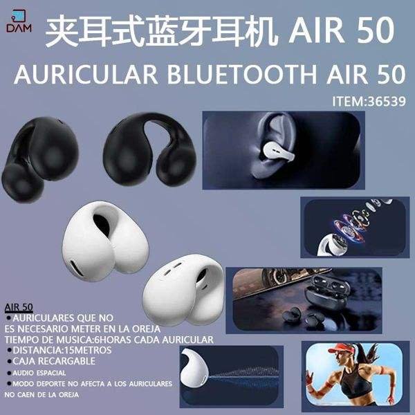 Auricolari DAM Air 50 Clip per Sport con Custodia di Ricarica Wireless, 6 Ore di Riproduzione, Indicatore LED, Impermeabilità IPX4, Controllo Touch, BT 5.2