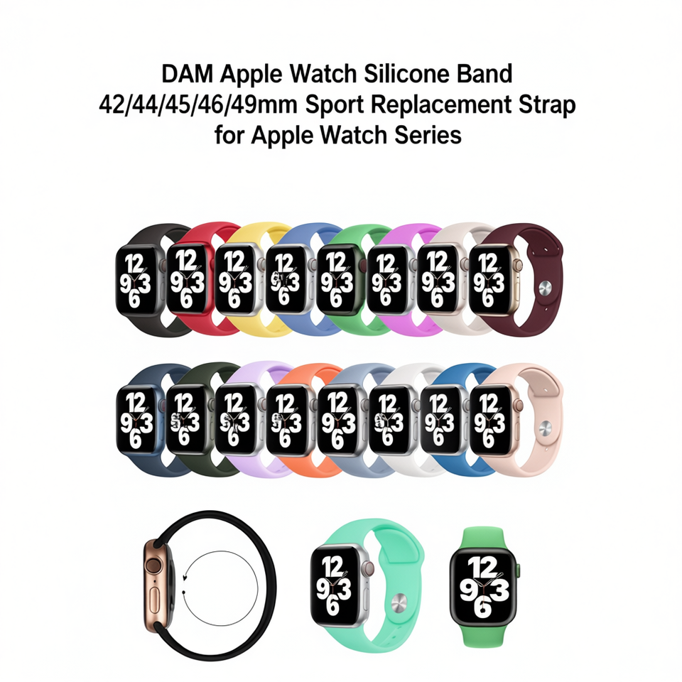 DAM Apple Watch Silicone Band 42/44/45/46/49mm Sport Replacement Strap for Apple Watch Series