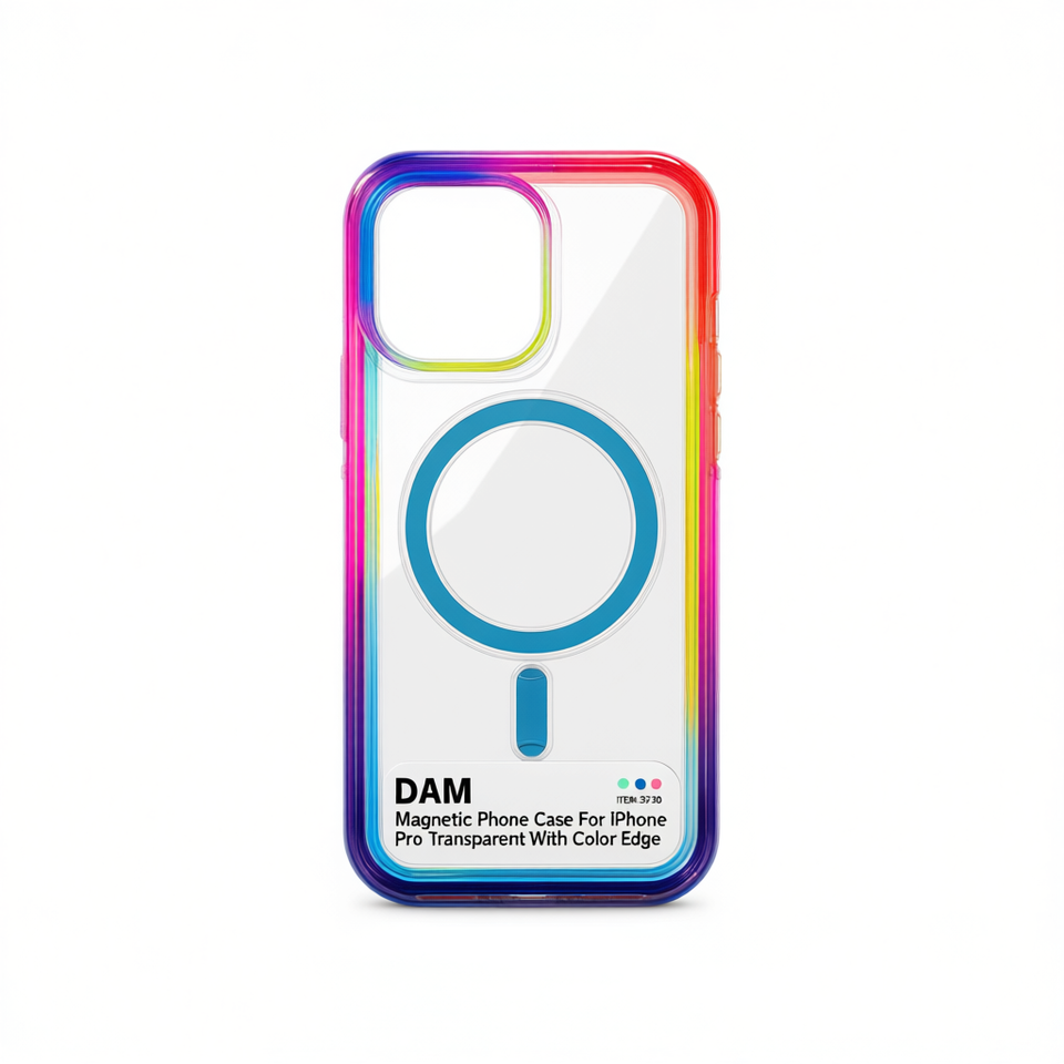 DAM Magnetic Phone Case For iPhone 15 Pro Transparent With Color Edge