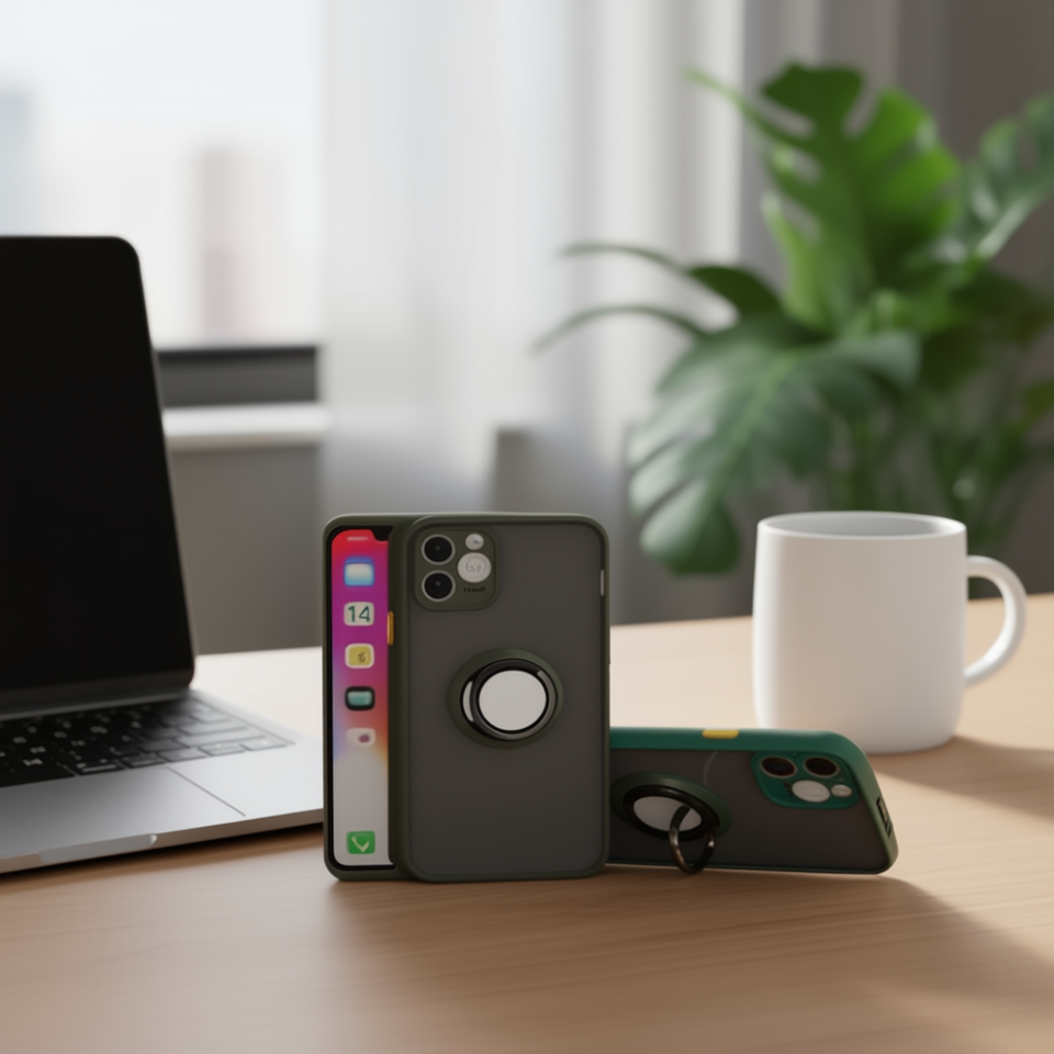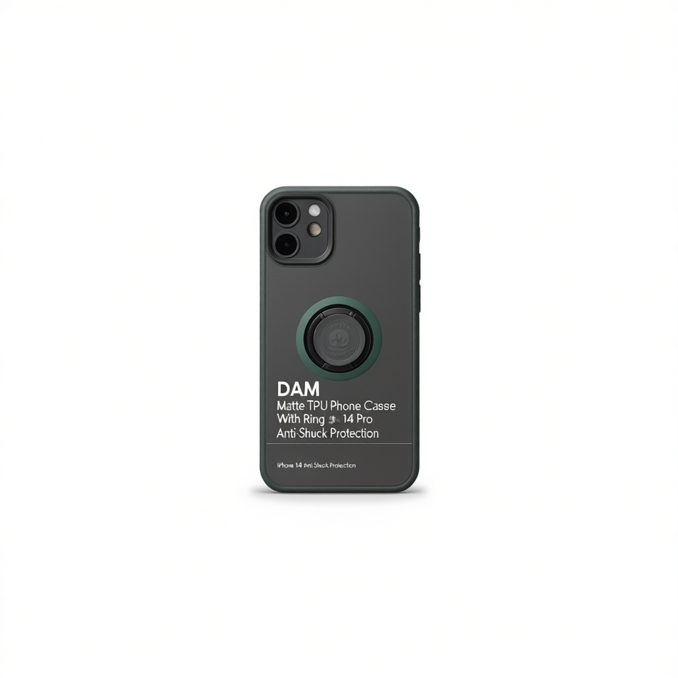 Custodia per telefono DAM Matte TPU con supporto ad anello per iPhone 14 Pro, protezione antiurto