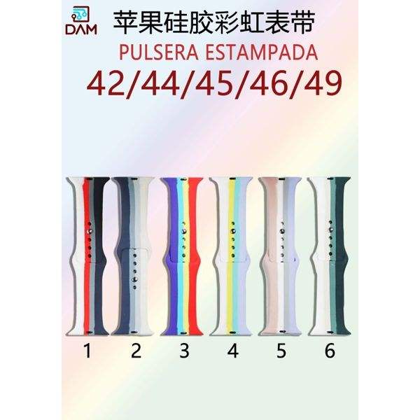 Cinturino per Orologio Sportivo in Silicone Stampato Arcobaleno DAM con Fibbia a Sgancio Rapido per Orologi 42/44/45/46/49