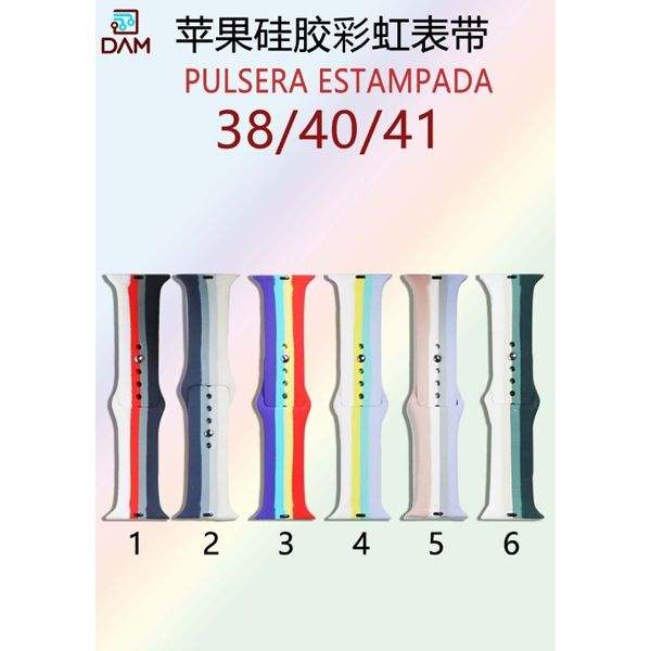 Cinturino per Orologio Sportivo in Silicone Stampato Arcobaleno DAM con Fibbia a Sgancio Rapido per Orologi da 38mm