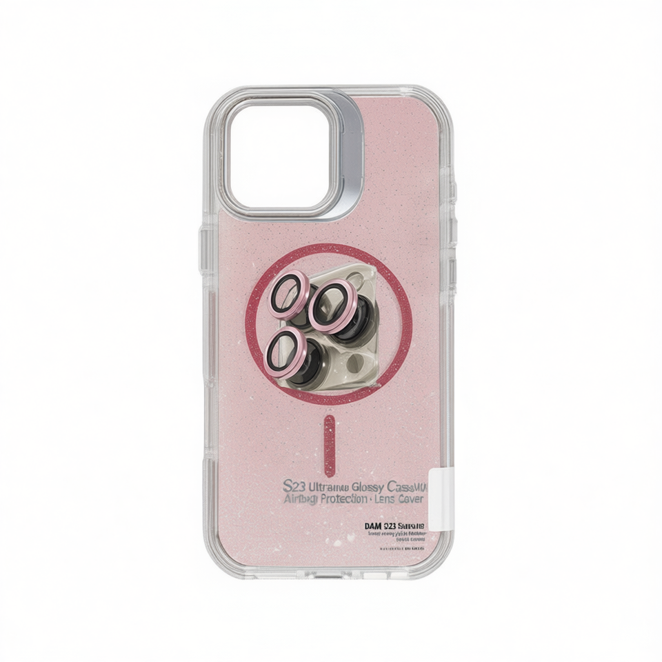 Custodia DAM per S23 Ultra Glitterata Lucida con Supporto in TPU+PC per Protezione Completa e Copriobiettivo