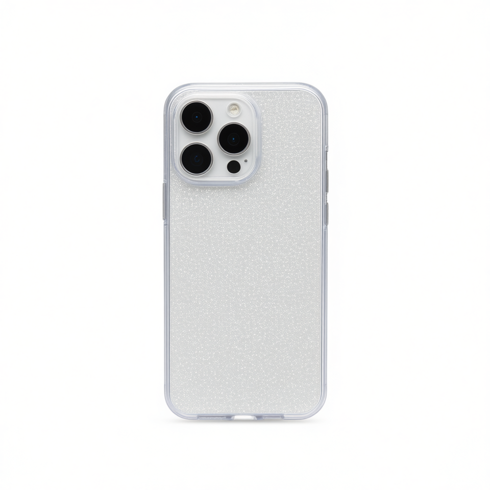 Custodia antiurto DAM trasparente con glitter per iPhone 15 Pro