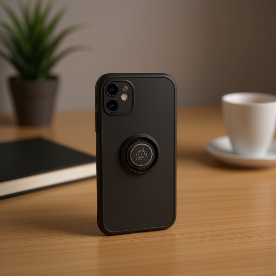 DAM TPU Phone Case Matte Finish With Finger Ring Stand For iPhone 11 6.1 Inch Anti Drop Protection
