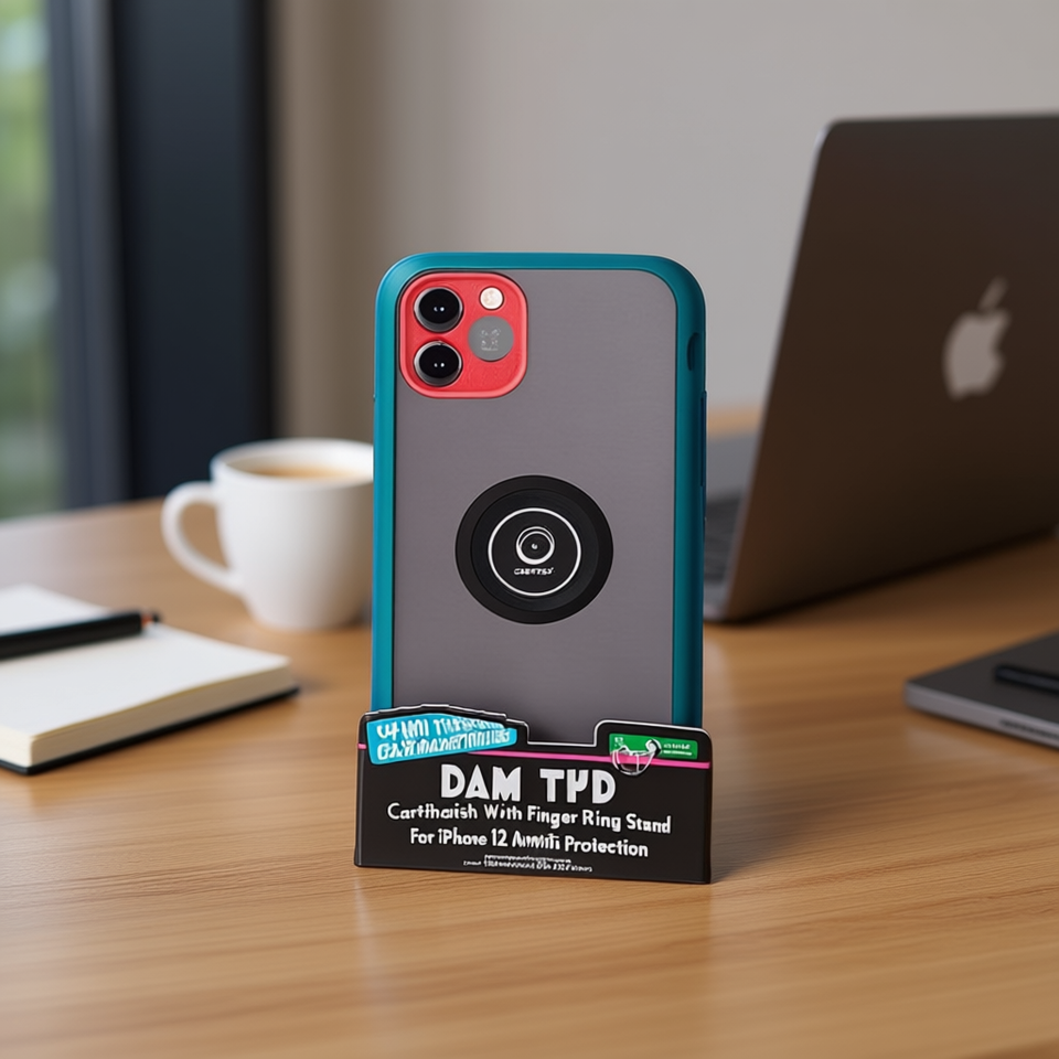 Custodia per telefono DAM TPU con finitura opaca e supporto ad anello per iPhone 12 Mini 5.4 pollici, protezione antiurto