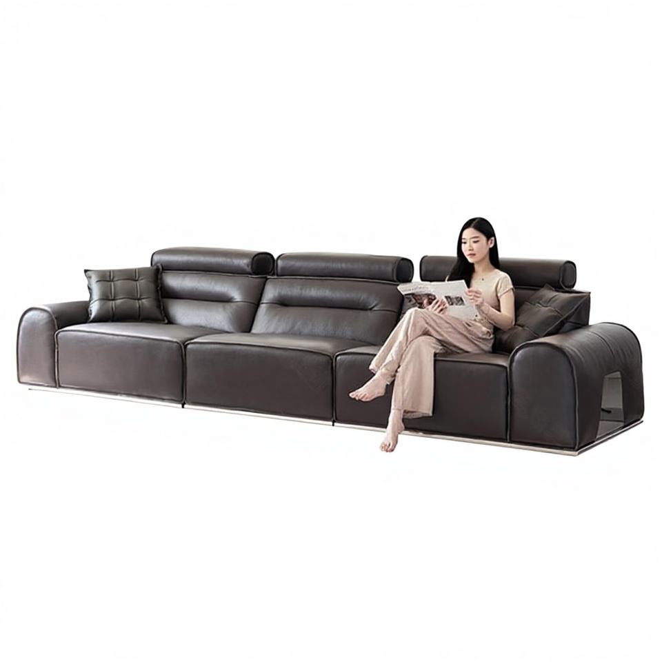 Divano a Tre Posti DAMENGNIU Yada Island in Vera Pelle di Alta Qualità, Stile Italiano di Lusso Leggero, con Spugna ad Alta Densità per Soggiorno