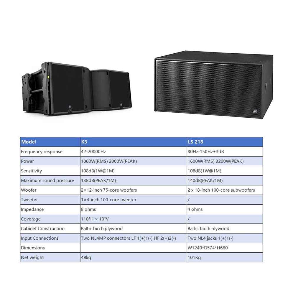 DBK K3 LS218 Subwoofer Passivo Doppio da 18 Pollici + Diffusore Line Array a 2 Vie da 12 Pollici, Sistema PA Professionale Portatile da 2000W di Picco per Concerti