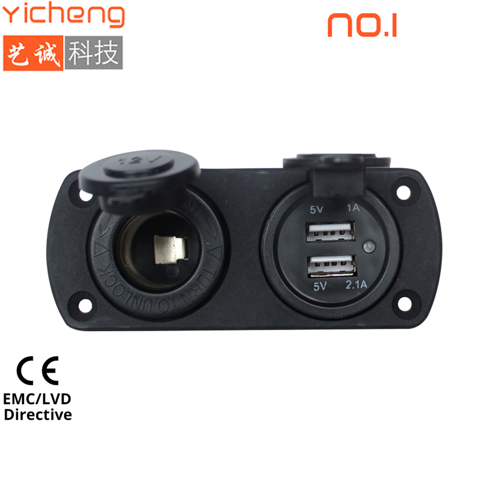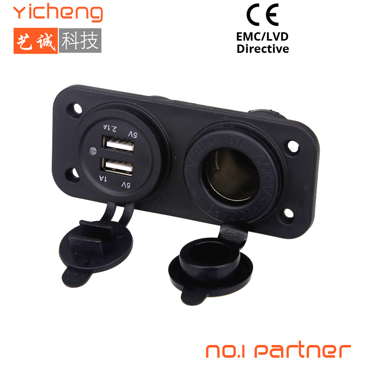 Imballaggio su misura accolto favorevolmente su DC 12V 24V Dual USB Montaggio a Pannello Socket Auto Accendisigari per il Telefono Mobile, spedizione di branding.