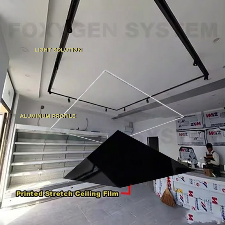 Sistema di Controsoffitto Elastico DDP MSD Impermeabile Ignifugo Bicolore con Film PVC Lucido per Casa