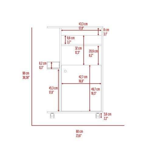 DEPOT E SHOP Carrello da Cucina Bianco Opal con Anta Singola e Quattro Ruote, Armadietto a Anta Singola, Isole e Carrelli da Cucina