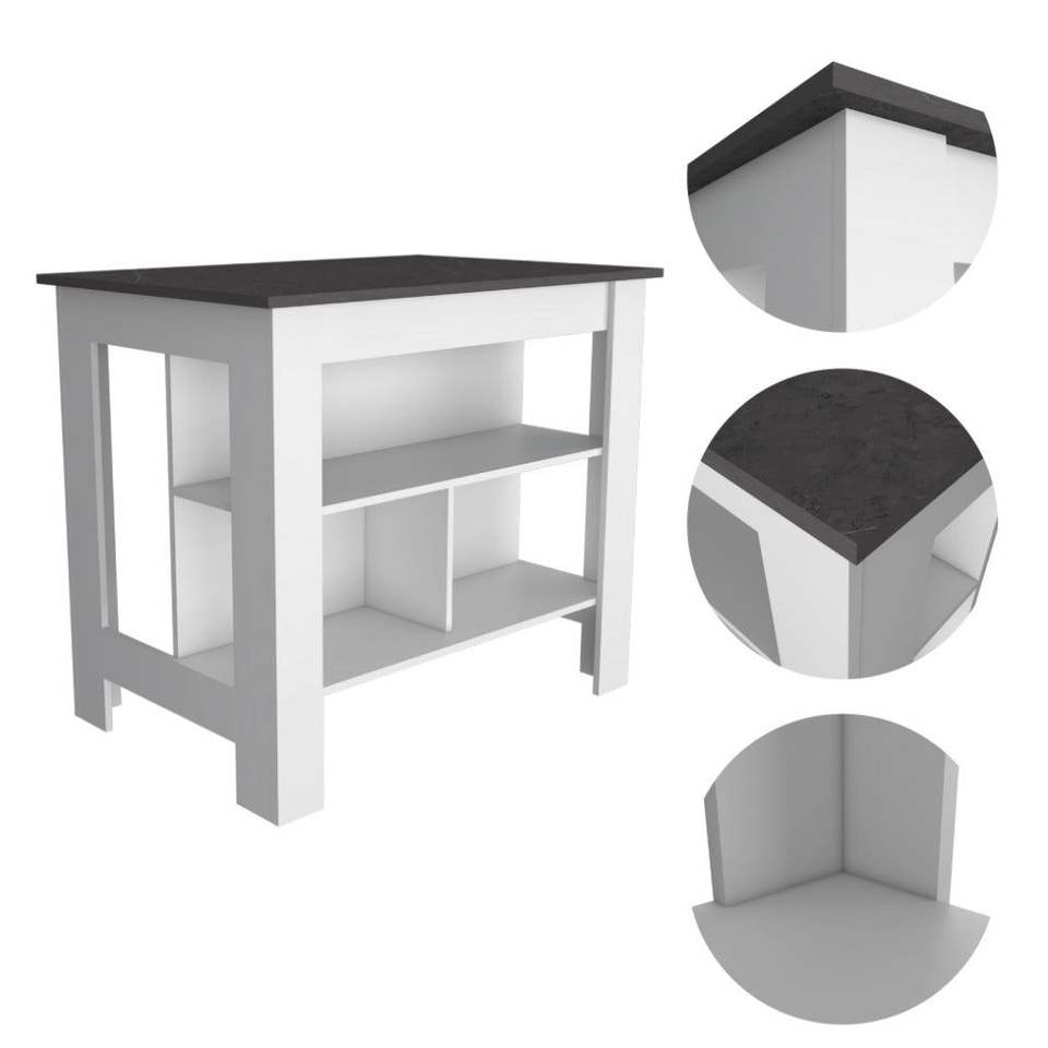 Isola da Cucina Delos a Quattro Gambe con Tre Ripiani Bianchi/Onix di DEPOT E SHOP