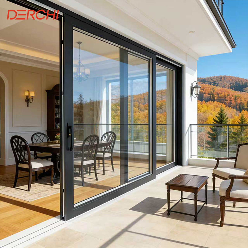 DERCHI NFRC Outdoor Hurricane Proof Patio Impact 4 Tracks Large Glass Exterior Balcony Thermal Break Aluminum Sliding Doors