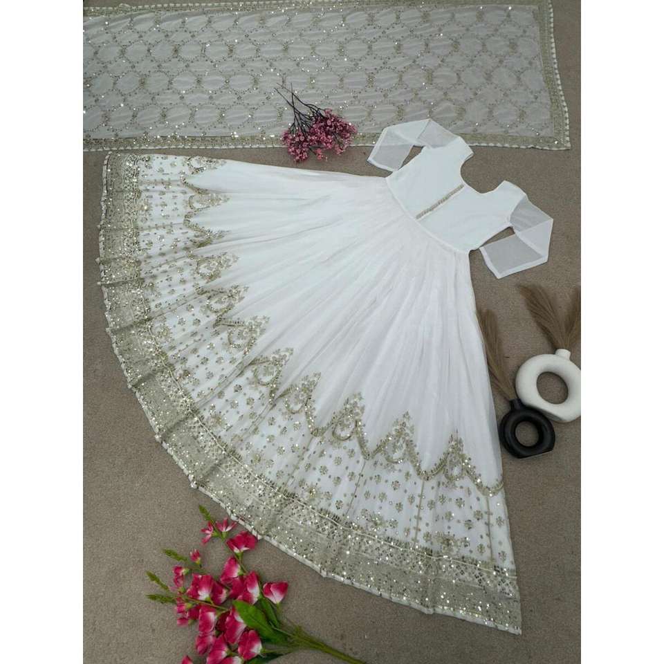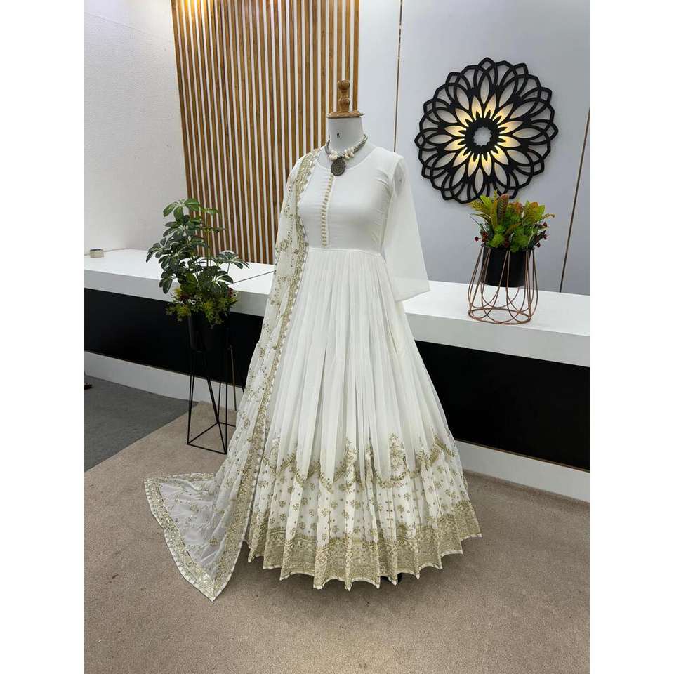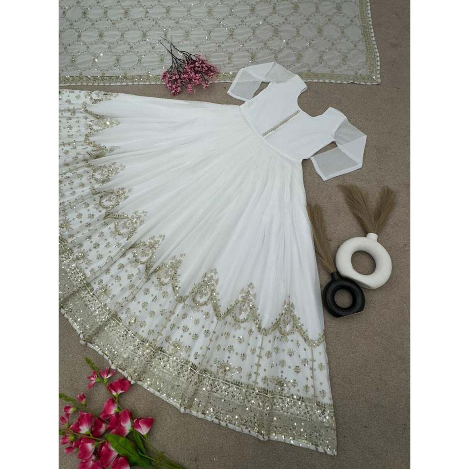 DESIGNER GEORGETTE EMBROIDERY SEQUENCE WORK GOWN with DUPATTA WHITE