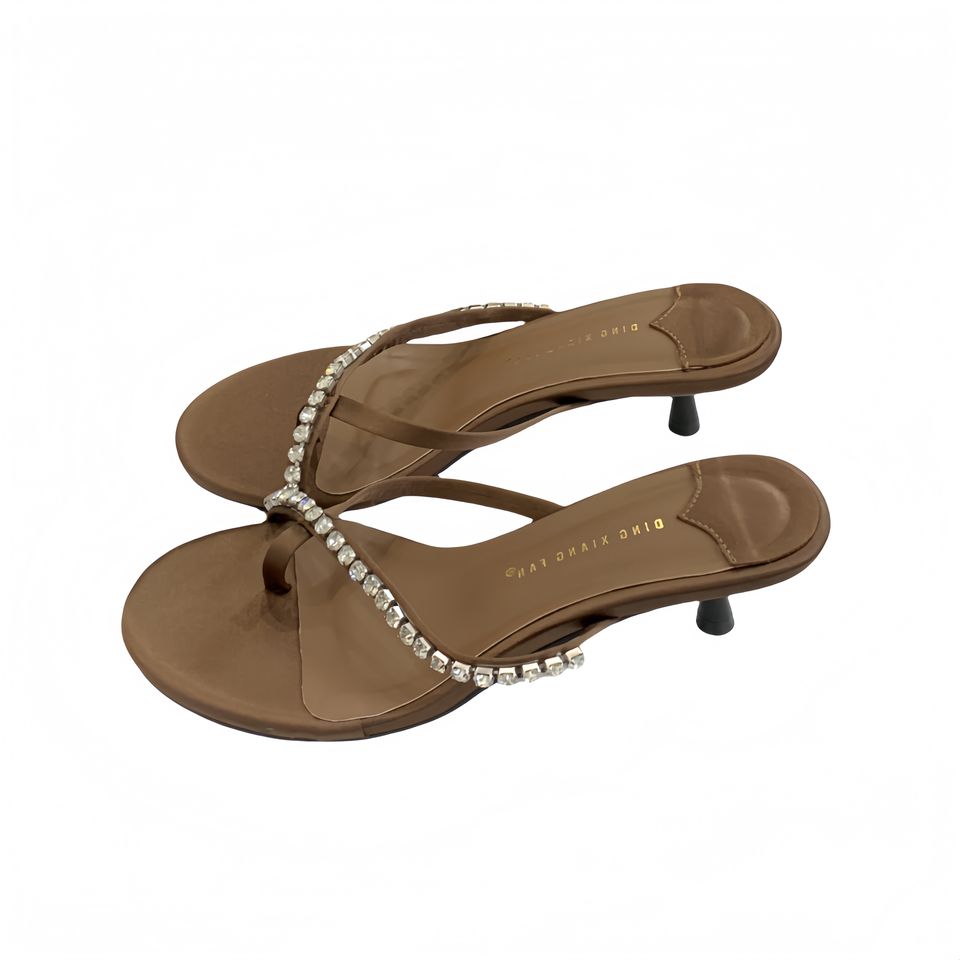 DEleventh Shoes open-toed women's silk satin sandals versatile and elegant with water-crystal embellishments and thin straps