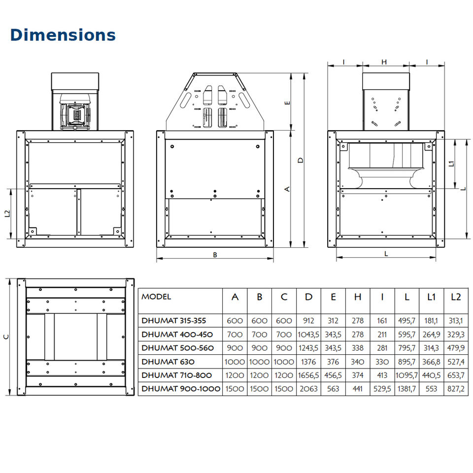 DHUMAT 450 T4 1,1kW F400 certified 400ºC/2h fan outside the hazardous area, galvanized-steel casing with inspection door; range