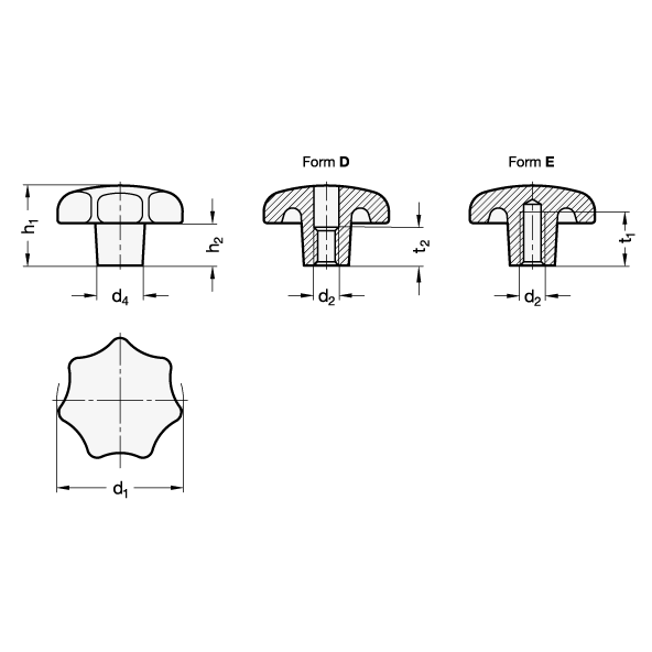 DIN 6336 Stainless Steel Star Handles Material No. 1.43 Premium Product Category