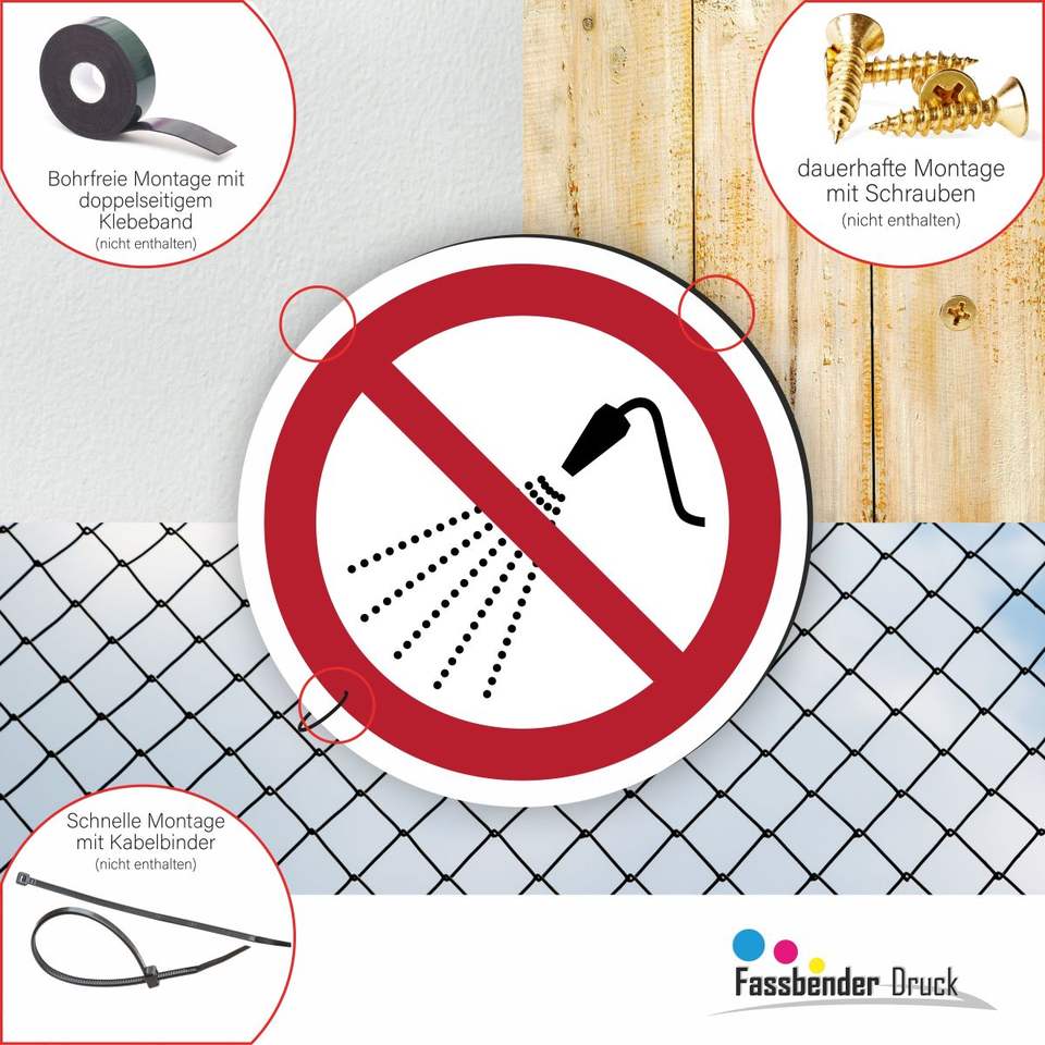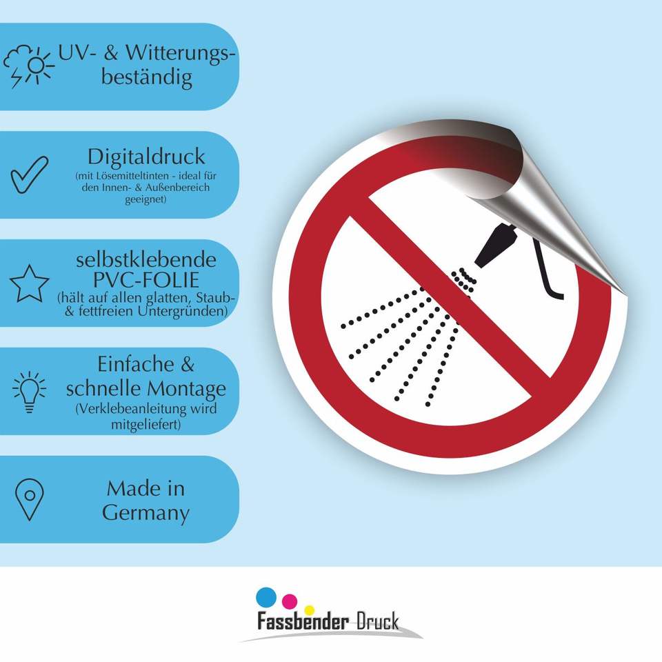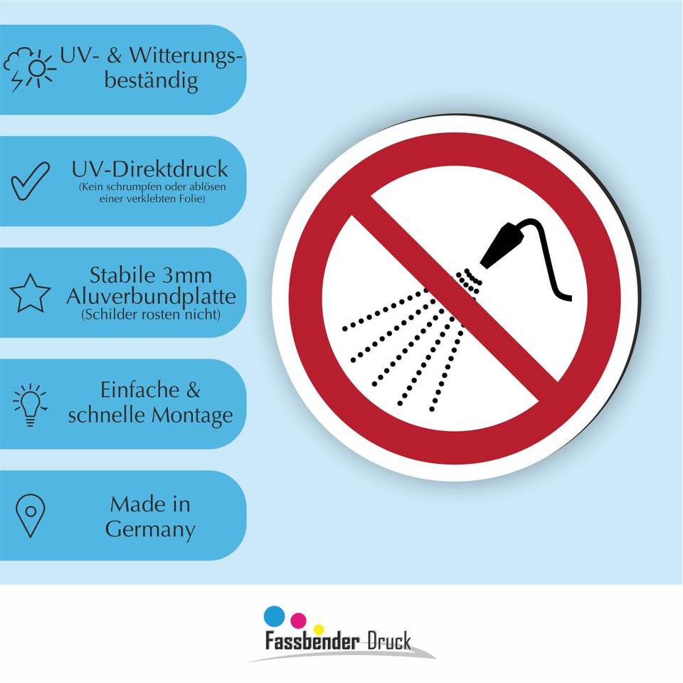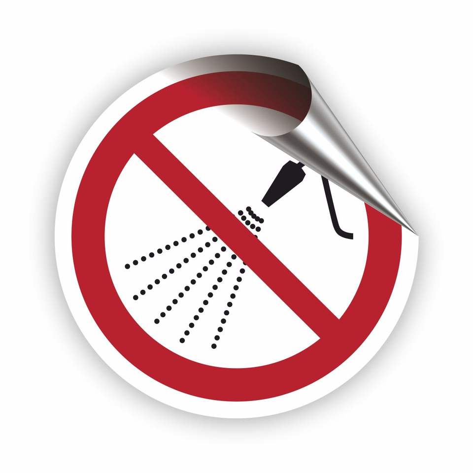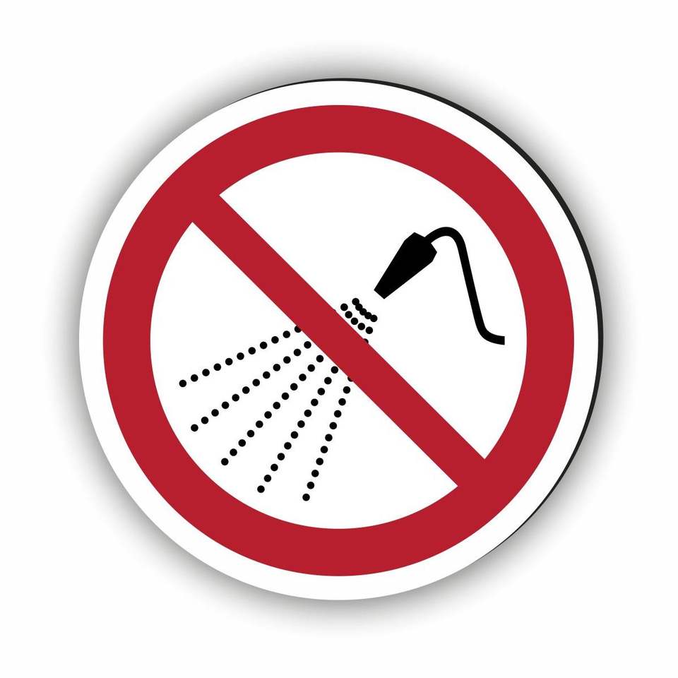 DIN EN ISO 7010 Compliant Electronic Round Sign (P016) Prohibition for Spraying Water