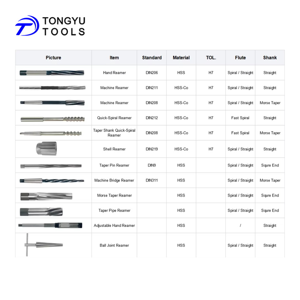 Nome del prodotto:Alesatore a mano per flauto a spirale DIN206 H7 HSS con gambo dritto