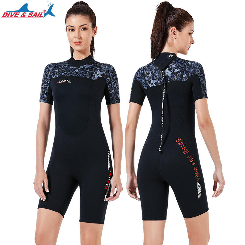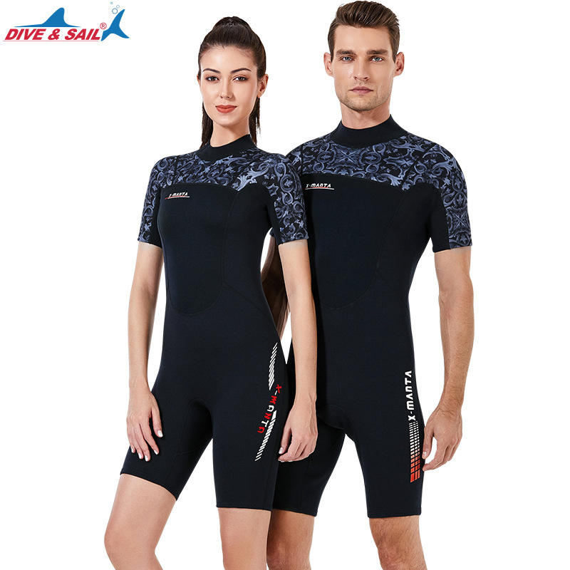DIVE&SAIL 3mm Shorties Swimming Diving Suit Clothes One Piece Short Sleeve Diving Wetsuit Men Women Shorty Surfing Suit