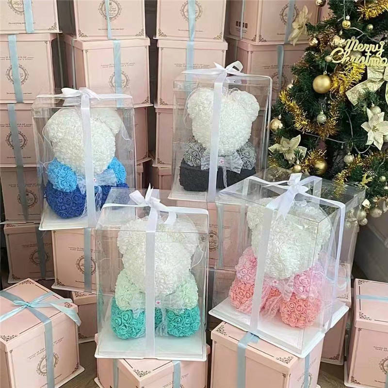 DIY 25 cm Teddy Rose Bear With Box Artificial PE Flower Bear Rose Valentine's Day for Girlfriend Women Wife Mother's Day Gifts