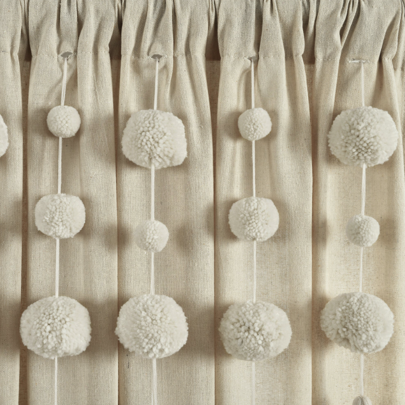 Tende fai da te stile bohémien Look lino Beige con finiture a sfera rotonda per soggiorno e camera da letto