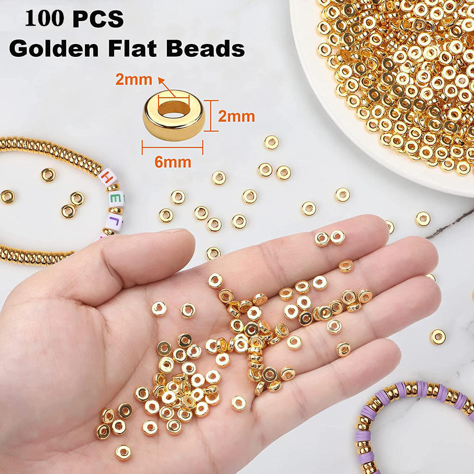 Perline piatte lucide sfuse per bracciali e collane fai da te, accessori artigianali con perline rotonde, distanziatori, disponibili all'ingrosso
