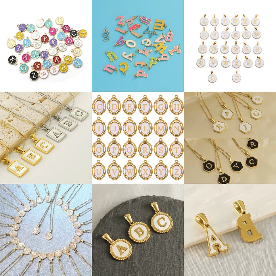 Ciondoli personalizzati con lettere dell'alfabeto A-Z in acciaio inossidabile dorato, a forma di cuore in zircone colorato, con conchiglia rotonda, fai da te
